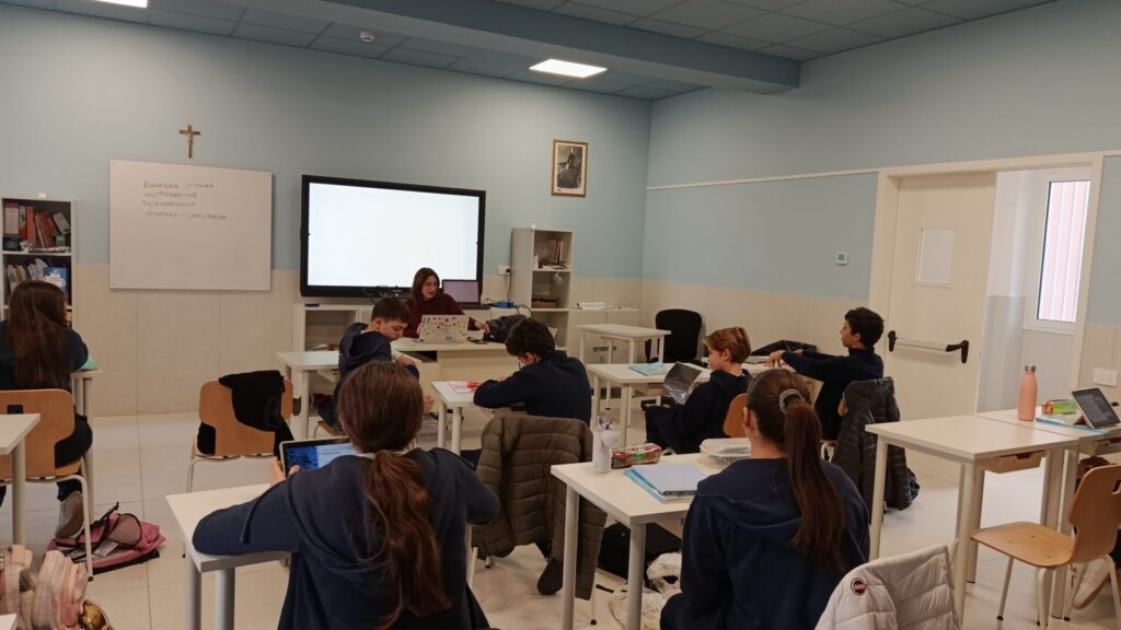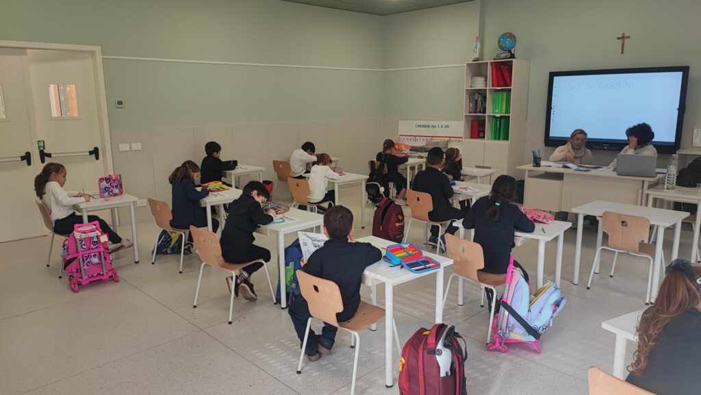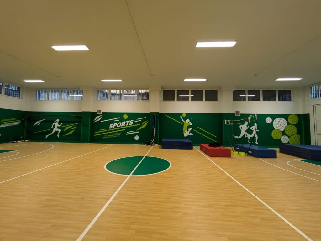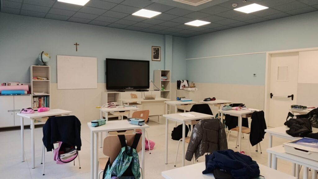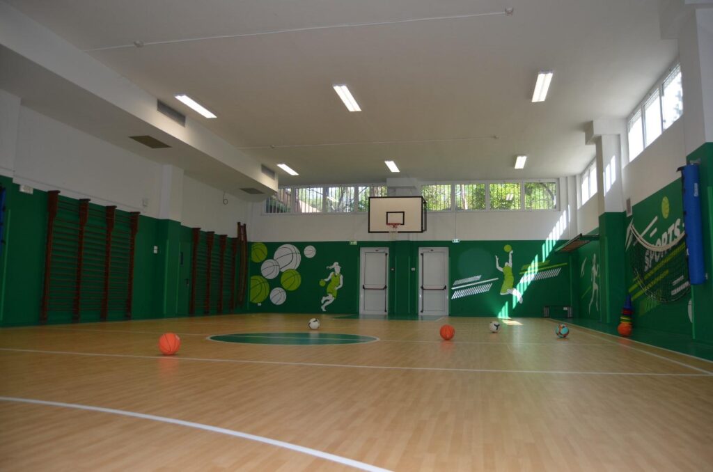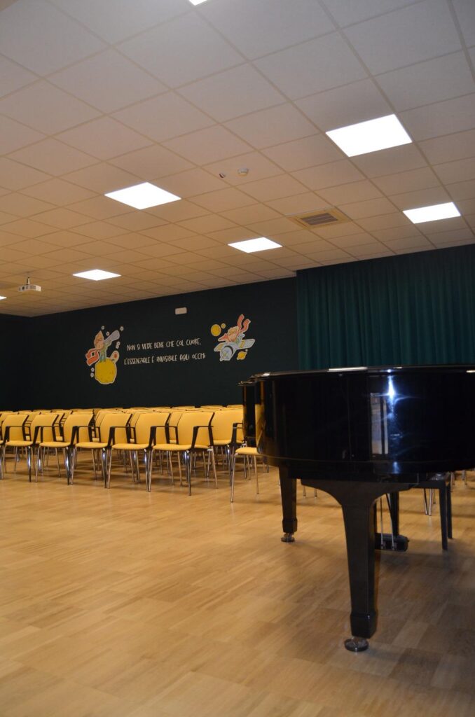 EsterniAule di scuola primariaAule di scuola secondariaPalestra e campi sportiviRefettorioCappellaAula Magna e teatroSale informatica, polifunzionale e spazio ricreativo in caso di maltempo