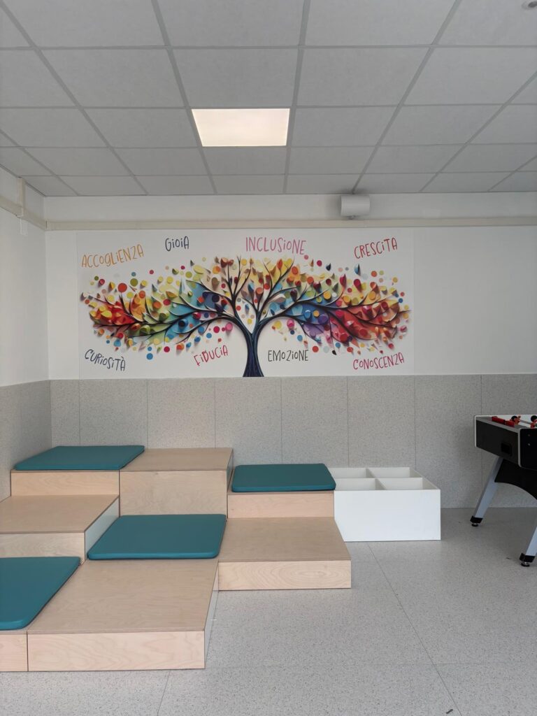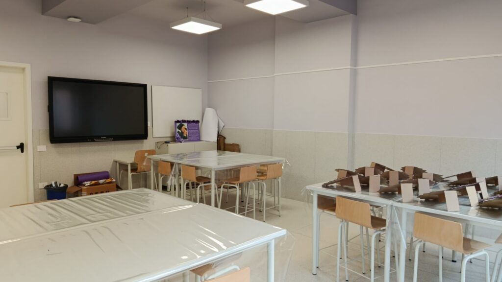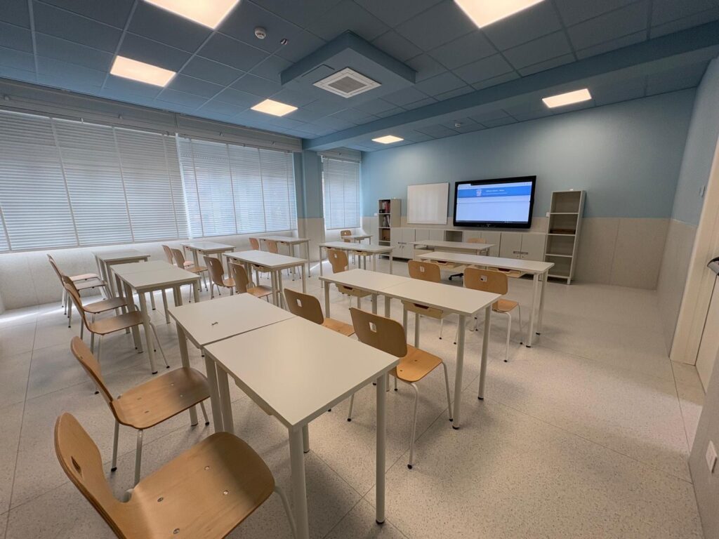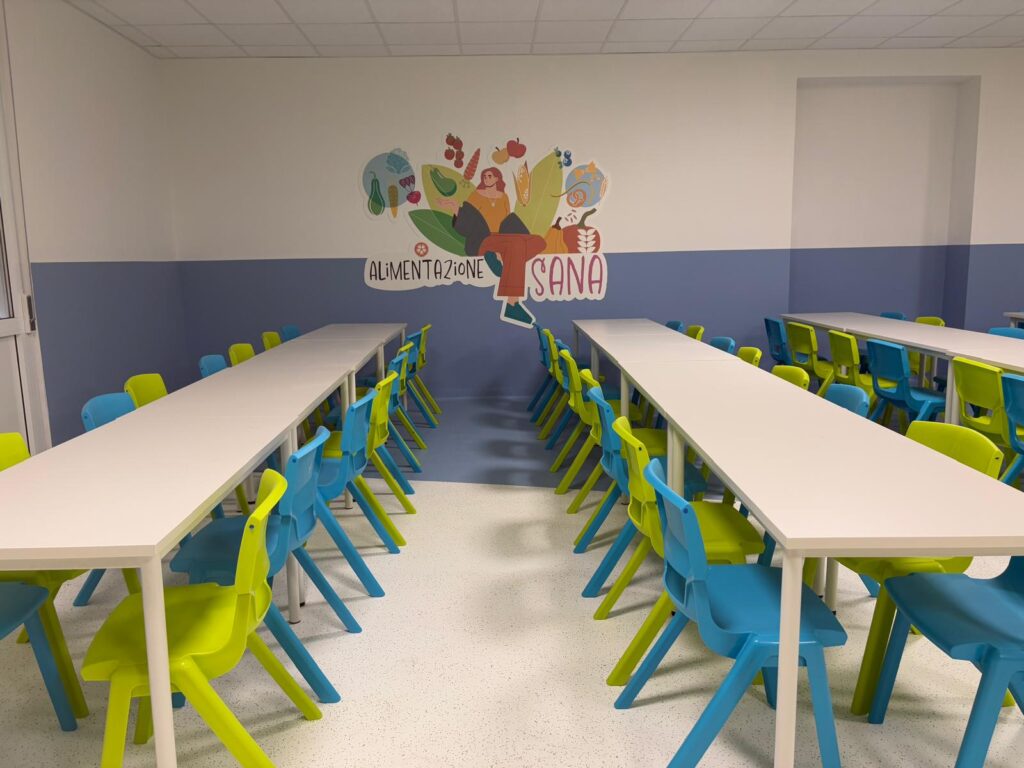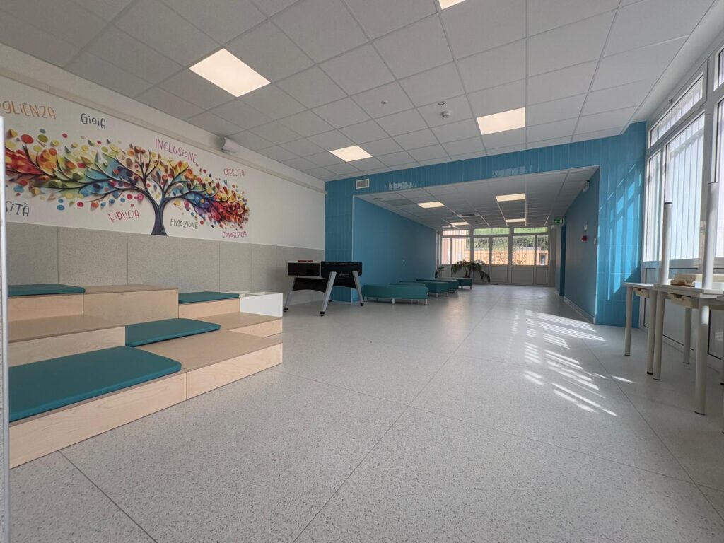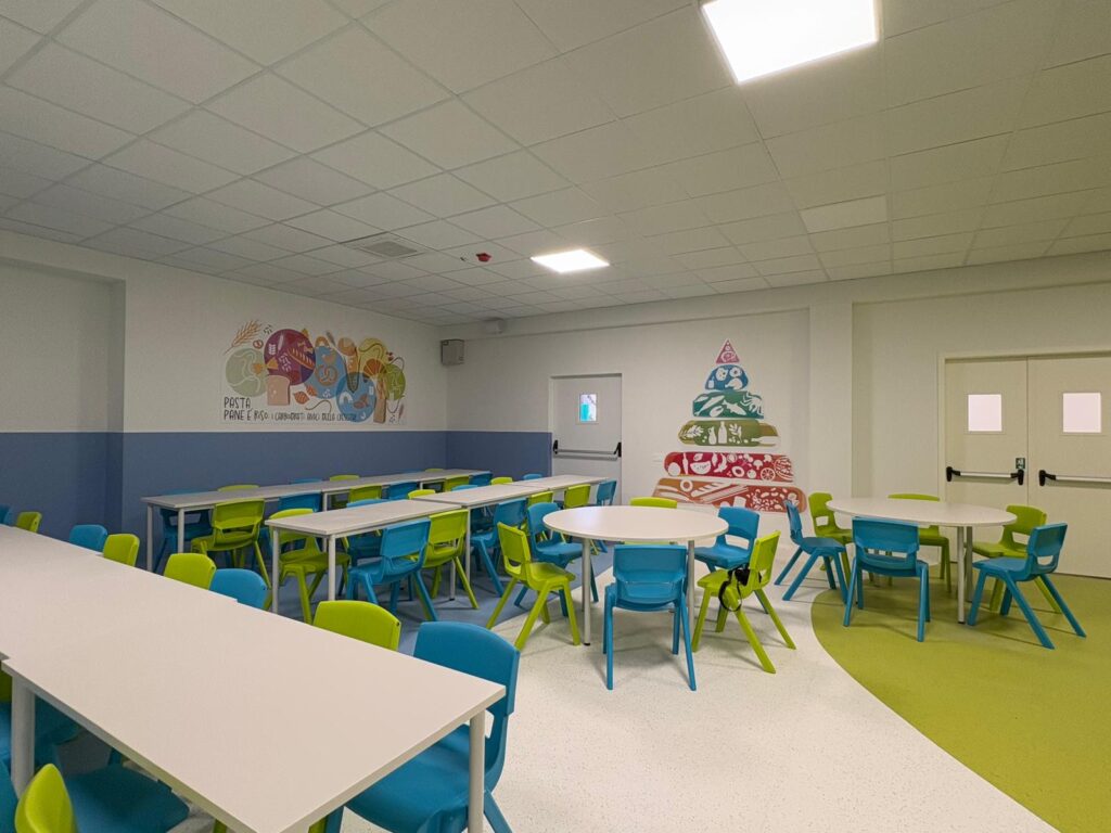 EsterniAule di scuola primariaAule di scuola secondariaPalestra e campi sportiviRefettorioCappellaAula Magna e teatroSale informatica, polifunzionale e spazio ricreativo in caso di maltempo